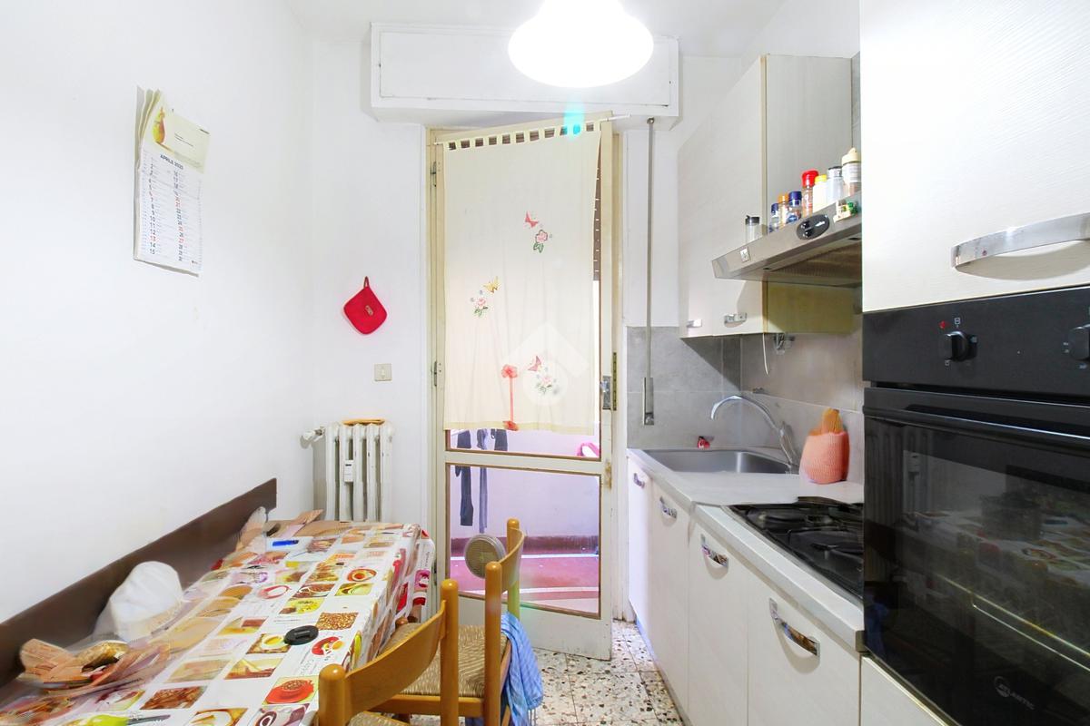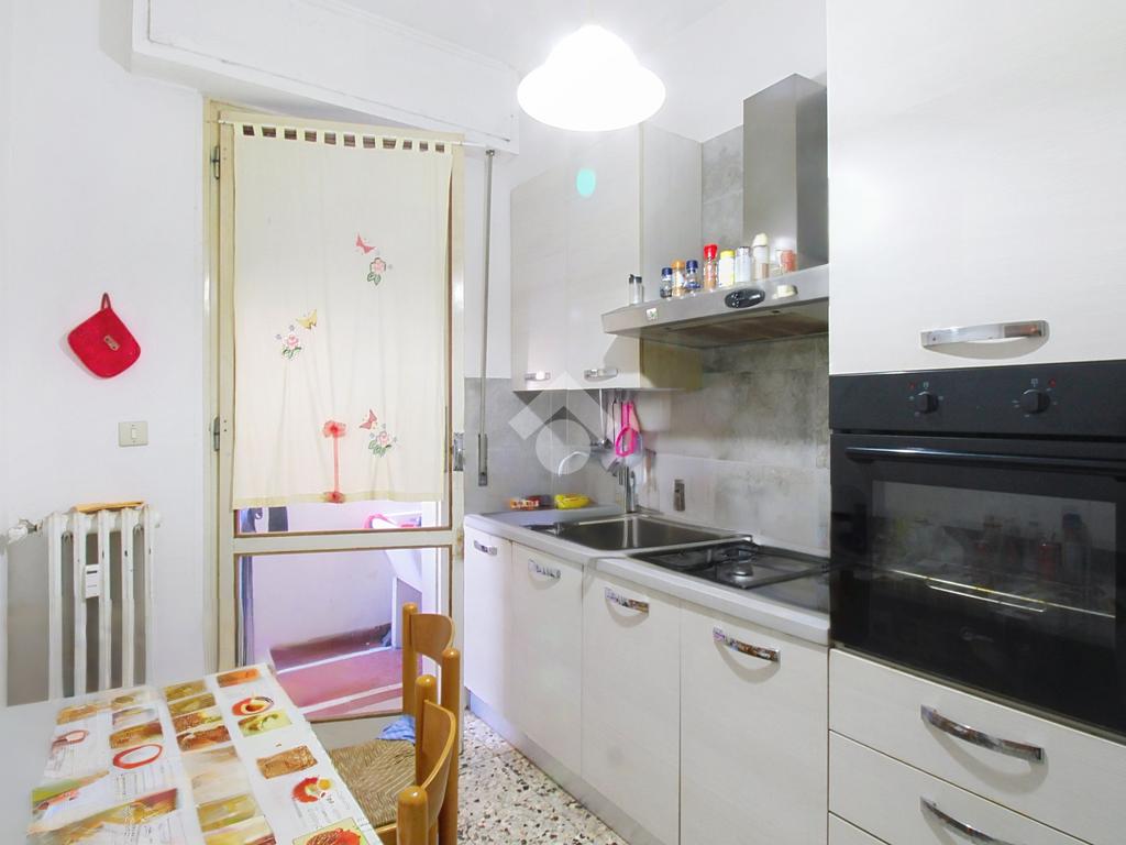 L’ingresso si apre su un pratico disimpegno che conduce alla zona giorno, composta da un cucinotto con accesso al balcone — dove si trova anche un comodo ripostiglio — e alla zona notte, formata da due camere da letto e un bagno finestrato completo di box doccia.